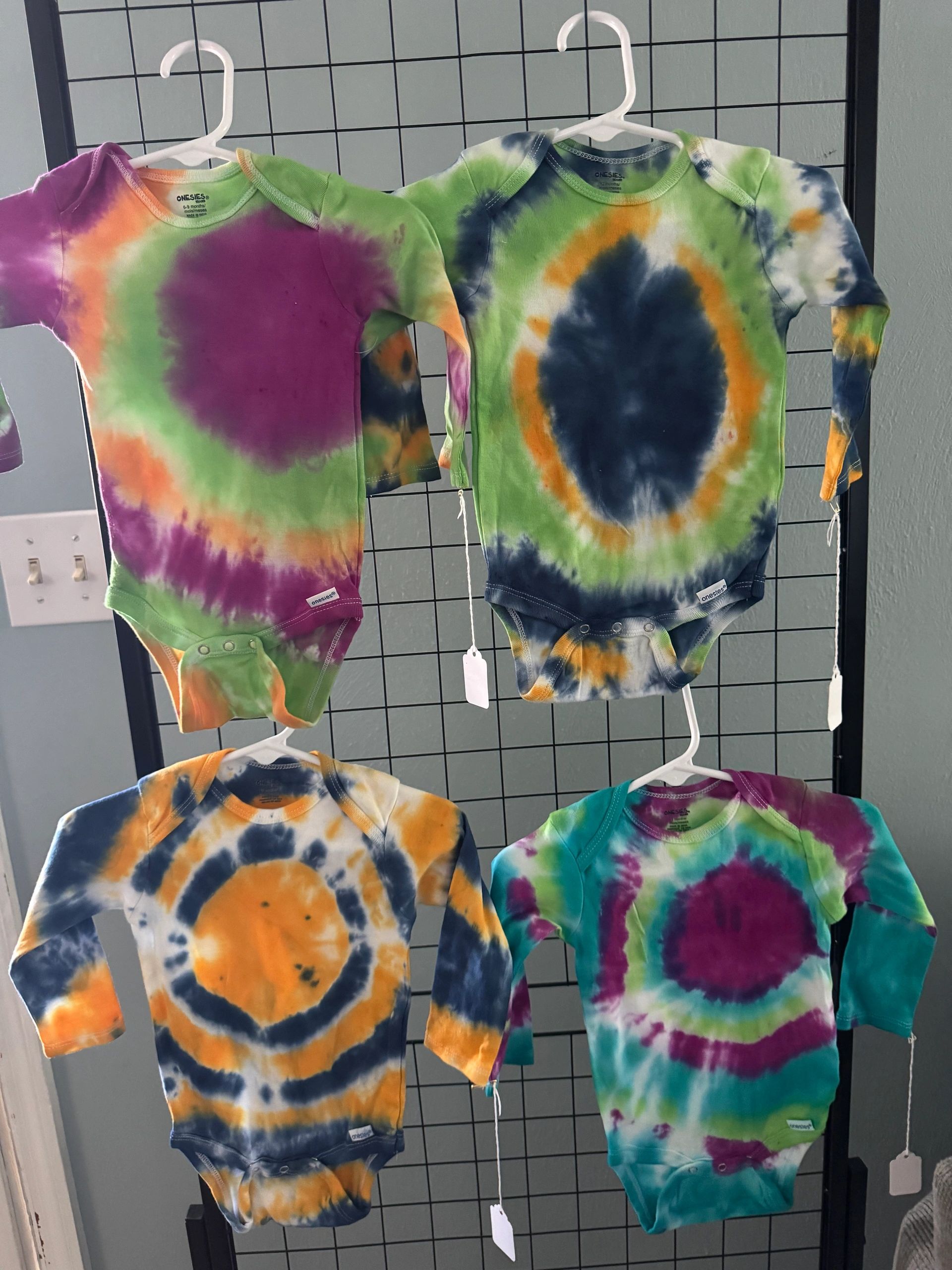 Add color and personality to your wardrobe with our hand-dyed creations! From shirts to baby clothes and more, each piece is uniquely crafted with bold patterns and playful designs. Perfect for expressing your style.